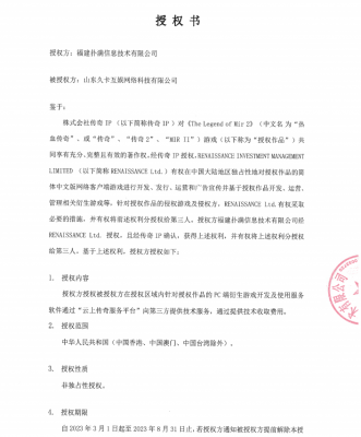 202404-08世界杯下单平台网站官网信息技术有限公司(以下简称“我司”)经株式会社传奇IP 、RENAISSANCE INVESTMENT ...