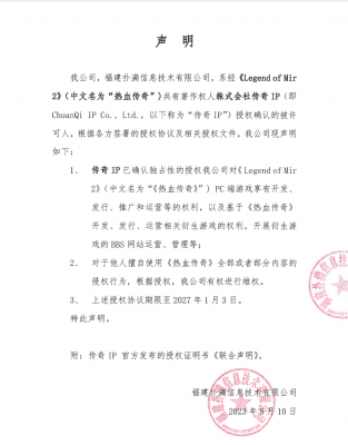 202308-16我公司,世界杯下单平台网站官网信息技术有限公司,系经《Legend of Mir 2》(中文名为“热血传奇”)共有著作权人株式...