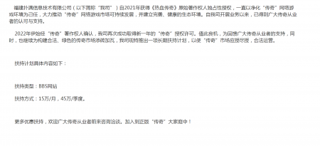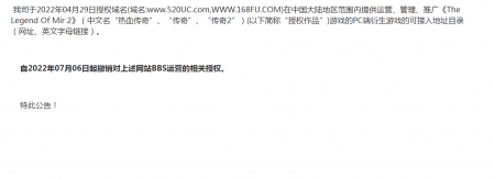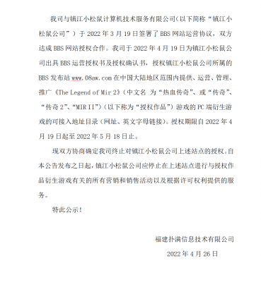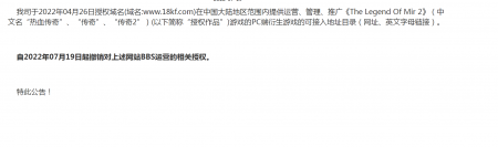 202204-26世界杯下单平台网站官网信息技术有限公司(以下简称“我司”)自2021年获得《热血传奇》原始著作权人独占性授权,一直...